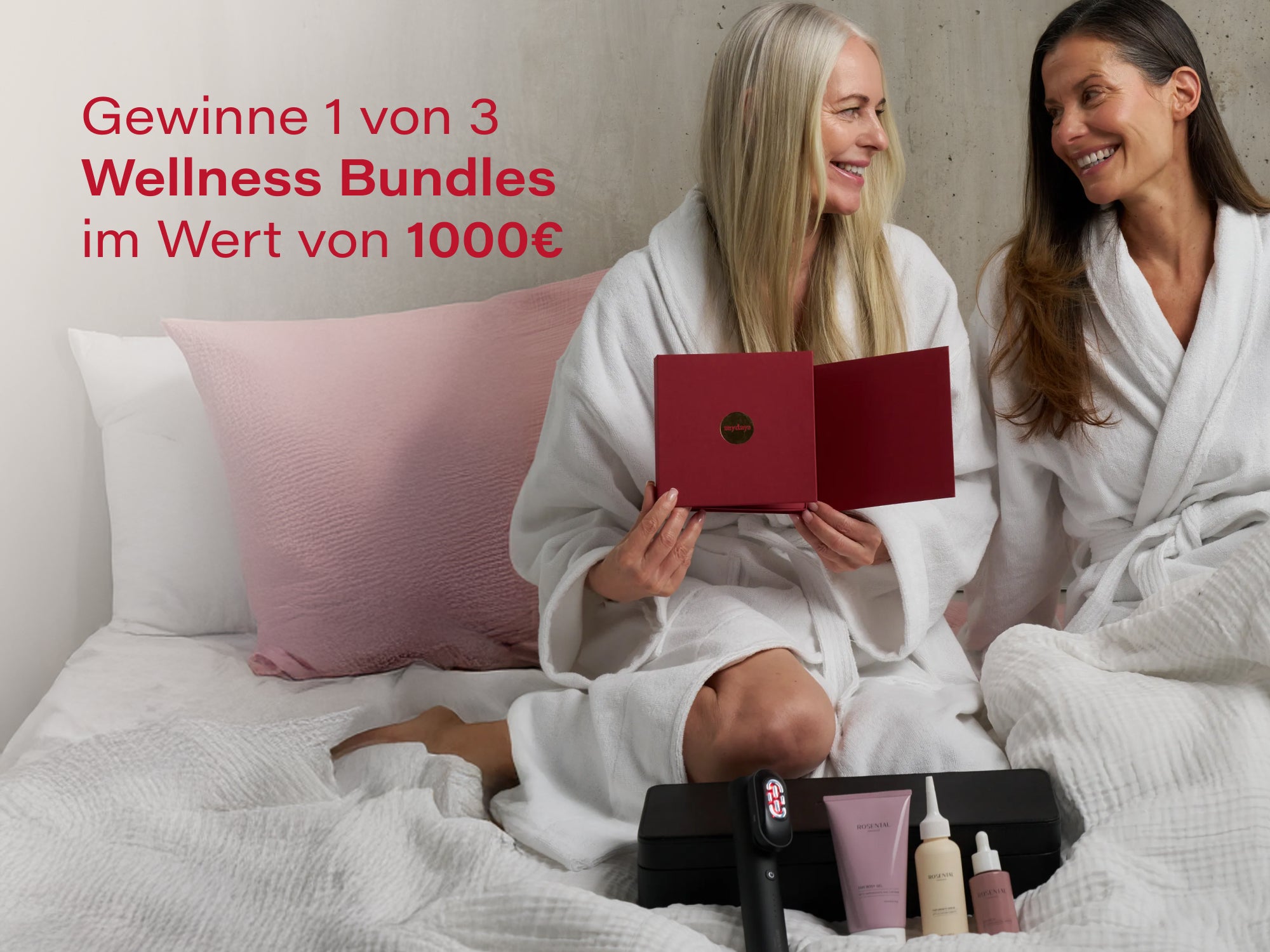 Schnell anmelden & gewinnen! Mit deiner Anmeldung sicherst du dir nicht nur die besten Angebote zum Women’s Day, sondern auch die Chance auf eines von drei Wellness Bundles im Wert von je 1.000€ – für deine wohlverdiente Auszeit.
